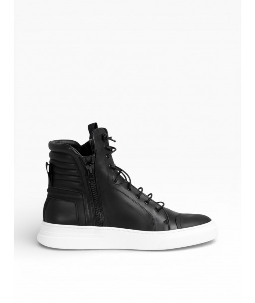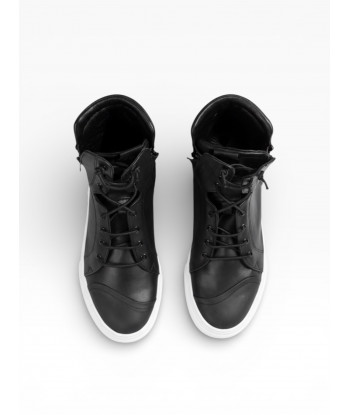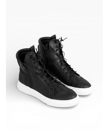 SNEAKER CON DOPPIA ZIP IN PELLE NERO CON ALLACCIATURA ELESTICO